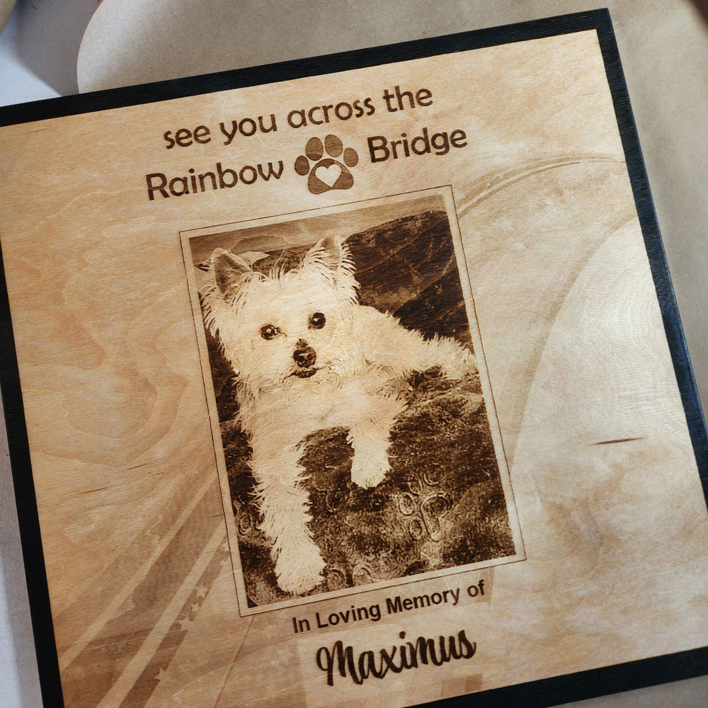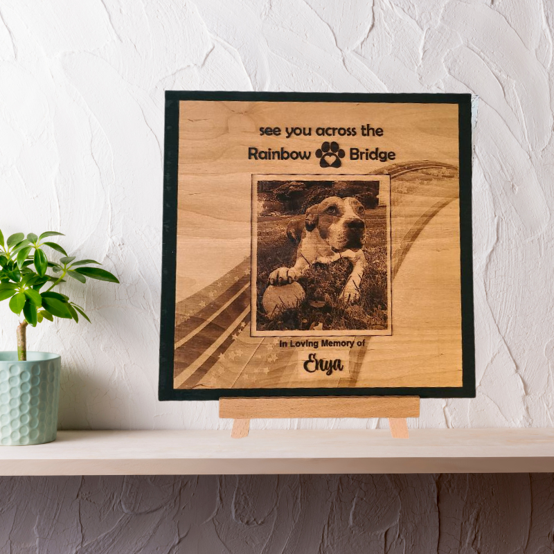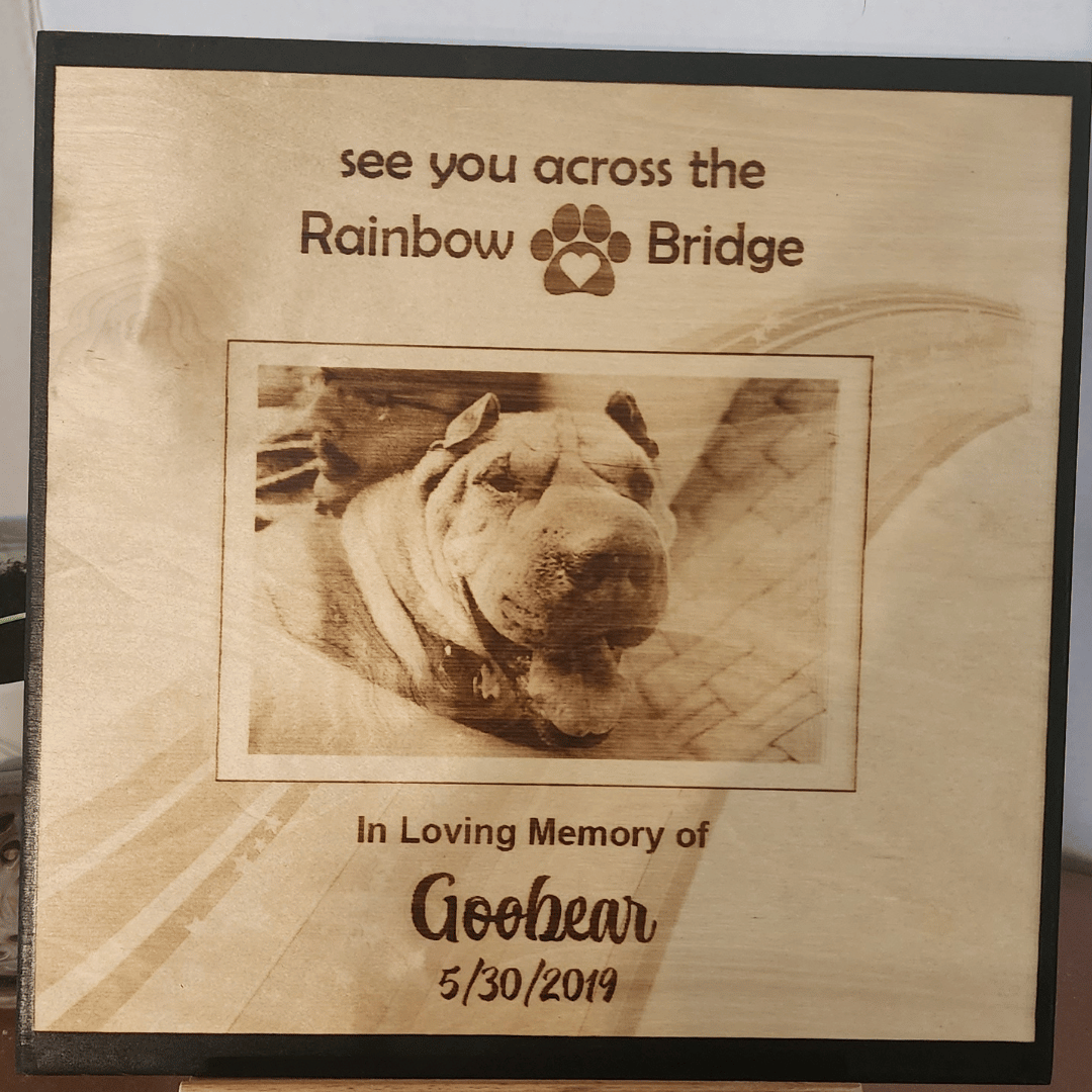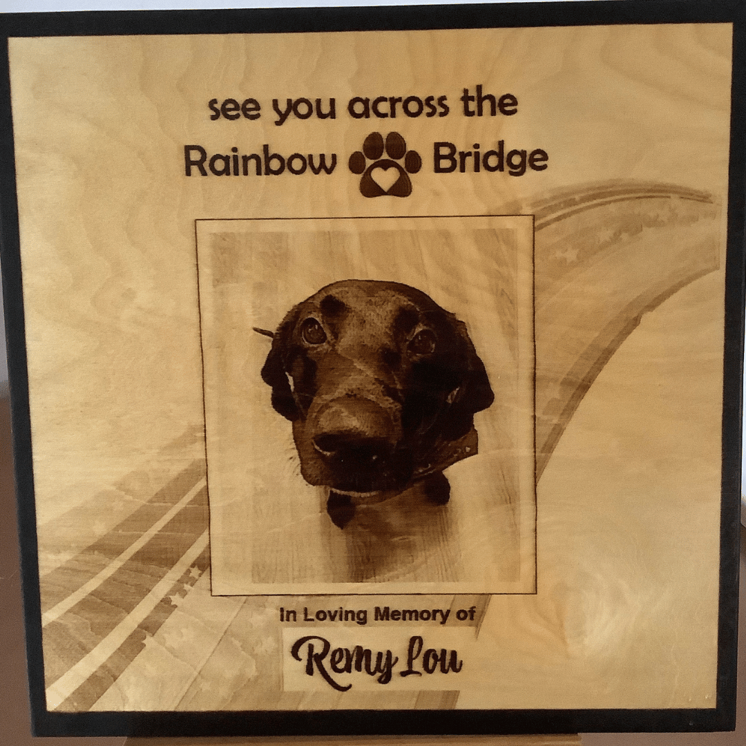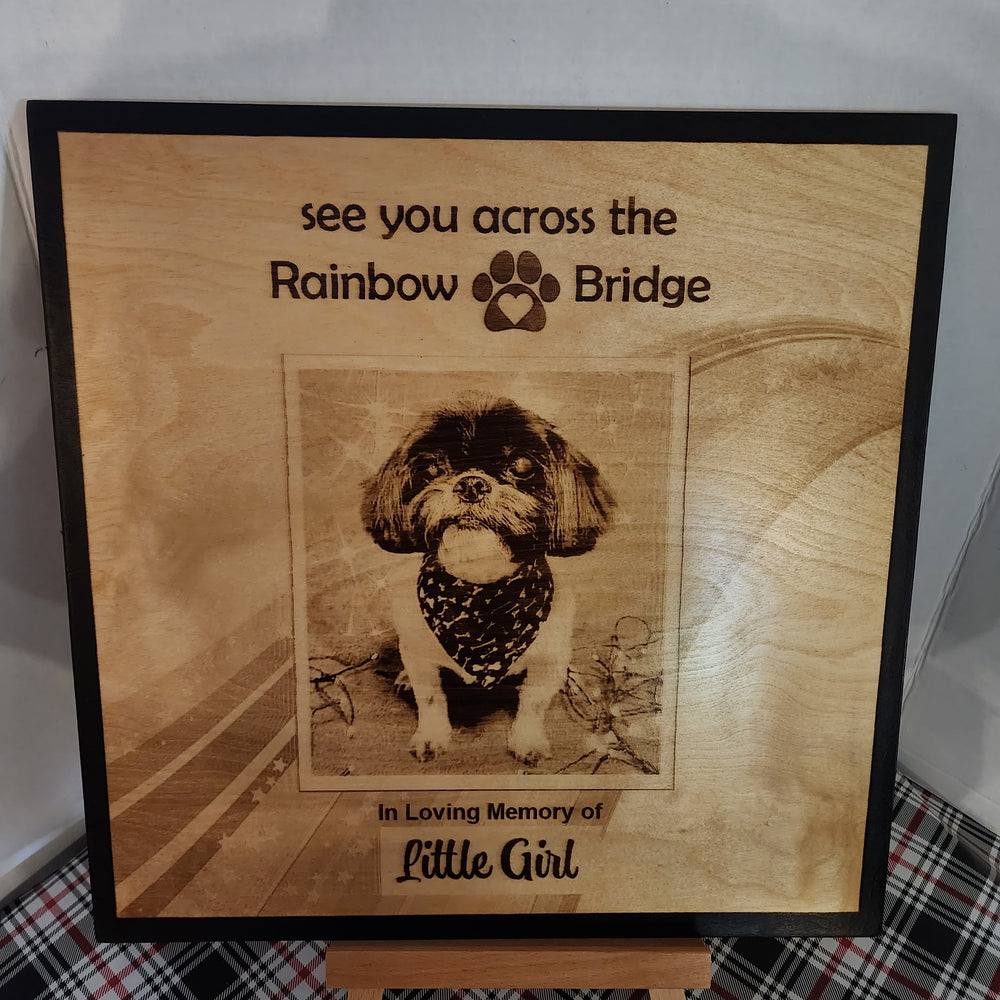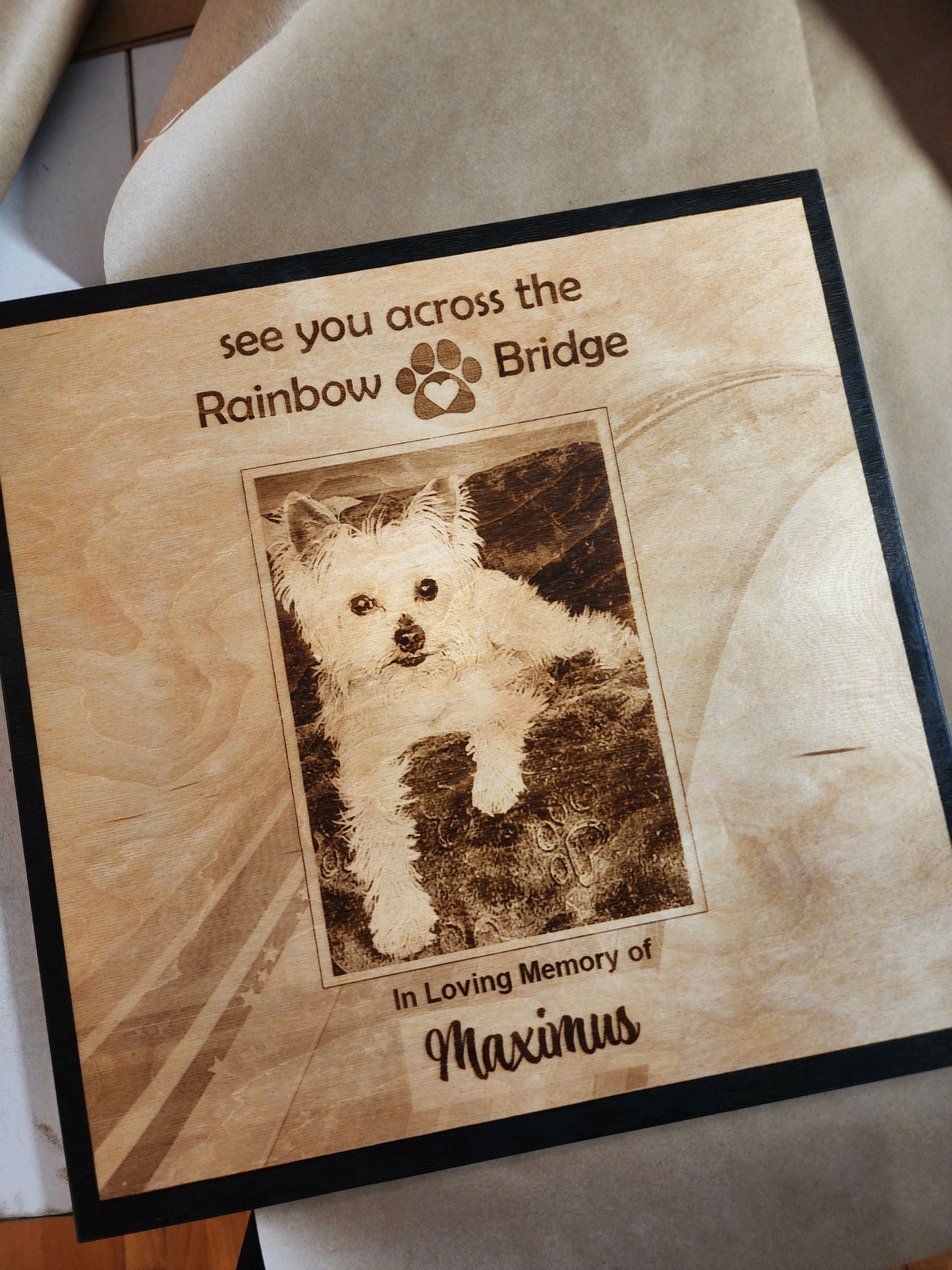 More than a memory, a masterpiece: Introducing Burnt Creation's Wood Burnt Personalized Creation for Pets that have passed over the Rainbow Bridge.